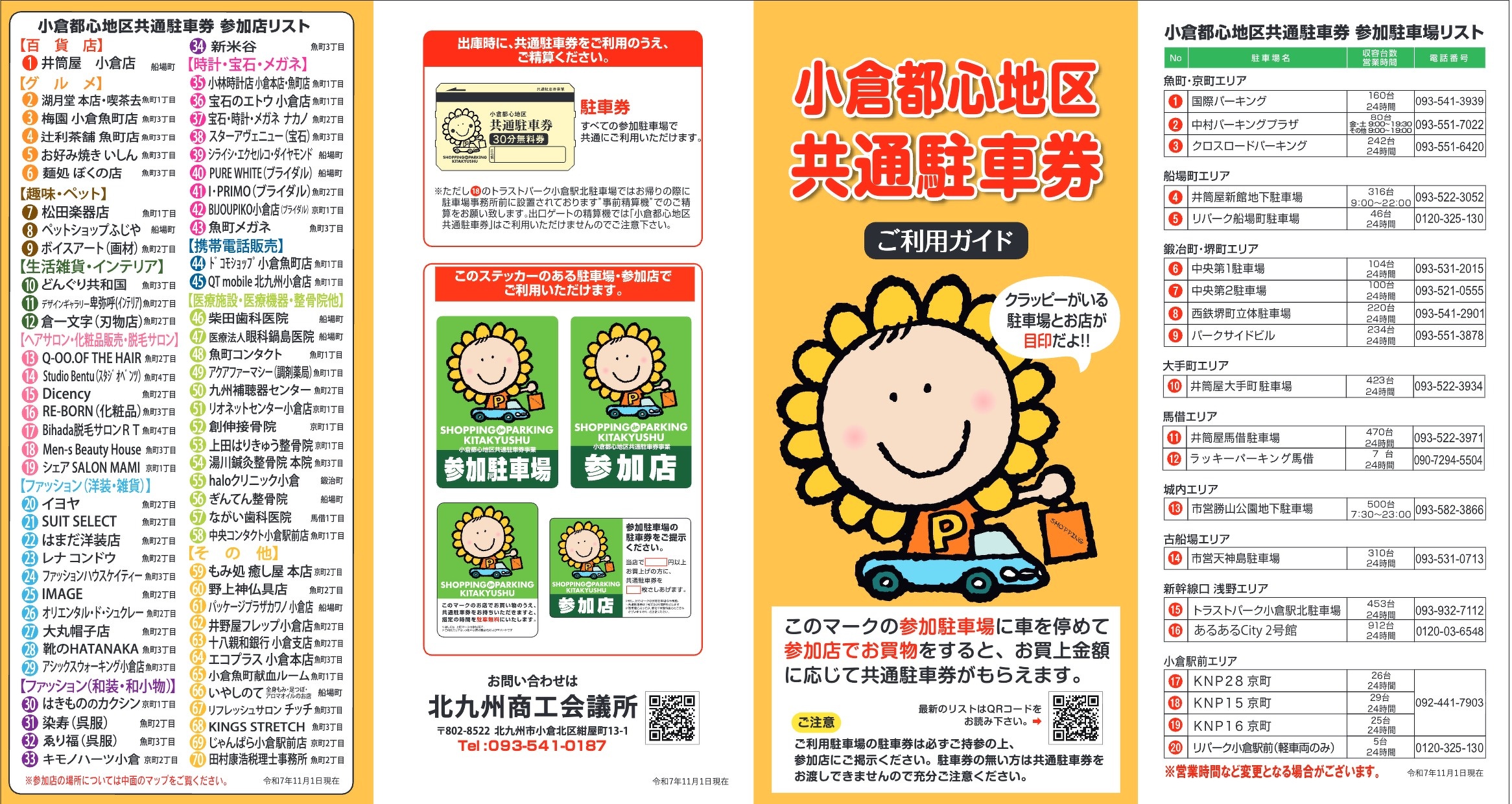 お買物されたお客様には魚町銀天街指定駐車場(小倉都心地区共通券)の駐車券を差し上げます。