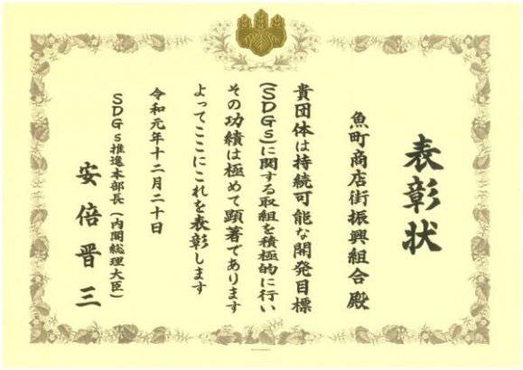 魚町商店街振興組合は、「第3回ジャパンSDGsアワード内閣総理大臣賞」を受賞しました。