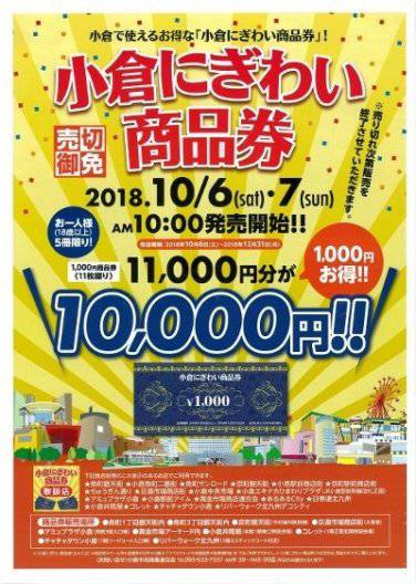 「小倉にぎわい商品券」を販売します。(福岡県内最大規模・小倉都心部の20団体約1,500店で利用可能)