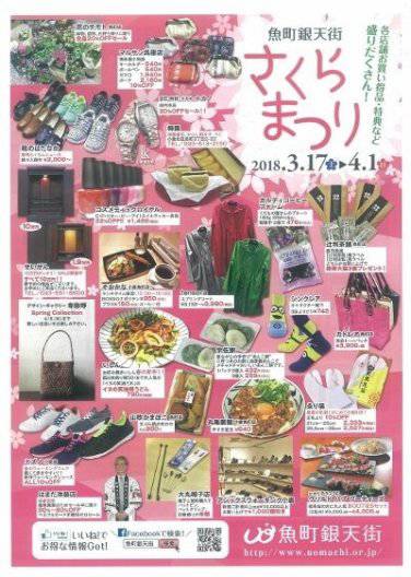 「さくらまつり」開催! 2018.03.14 3月17日土曜日から魚町銀天街の「さくらまつり」セールが開催されます。 この春のお得な品物がたくさんです!! 期間中に魚町銀天街の2丁目3丁目の店舗で500円以上のお買い物をされると、バス旅行などが当たる応募券をお渡ししています。 魚町銀天街でお買い物してどしどしご応募くださいね(^_^) ぜひ魚町に遊びに来てください(*^^*)