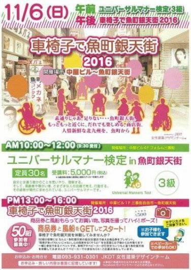 車椅子やベビーカーの行き交ういつもと違う魚町銀天街が体験できるイベントです。