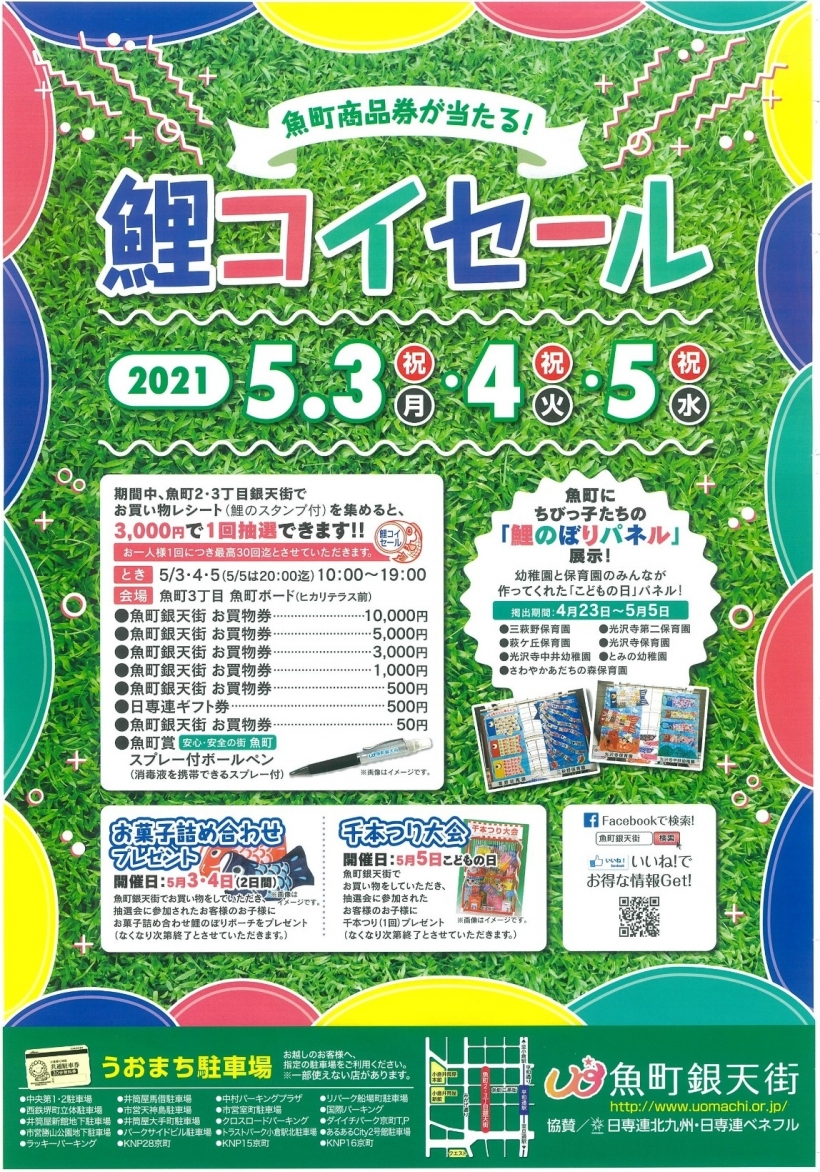 魚町にちびっ子たちの「鯉のぼりパネル」展示!4月23日~5月5日