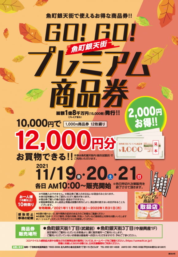 「魚町銀天街GO!GO!プレミアム商品券」販売のお知らせ