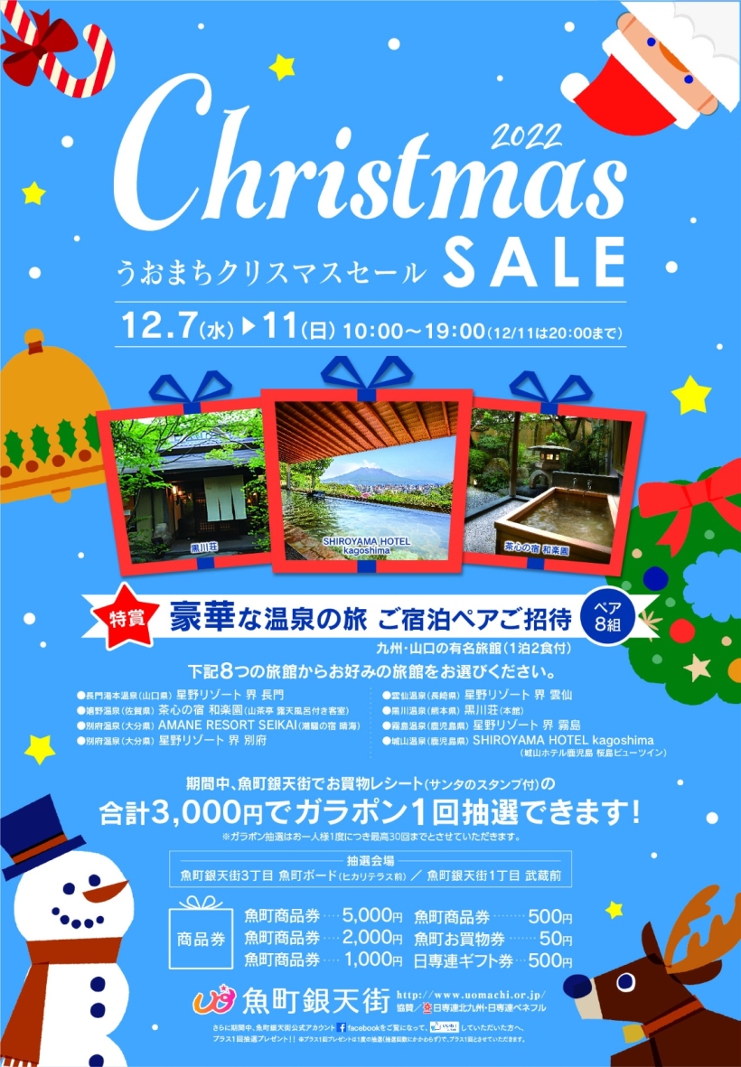 期間中、魚町銀天街でお買い物レシート(サンタのスタンプ付)の
