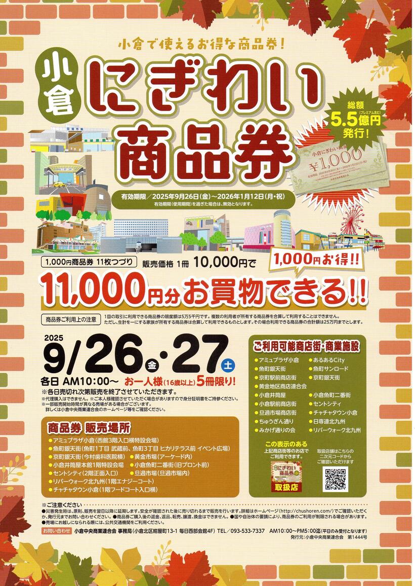 販売価格:1冊10,000円(1冊あたり1,000円券×11枚)