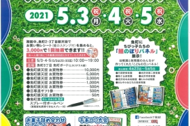 日時:2021年5月3日(月・祝)~5月5日(水・祝) 10:00~19:00(5/5は20:00まで) 会場:魚町ボード前(ヒカリテラス前)